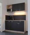 Jede Küche hat eine Gesamtlänge von 150cm, 180cm oder bis 210cm und ist individuell ausgestattet. Auf Wunsch auch mit großem Designkühlschrank.