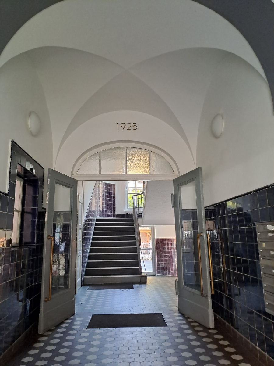 Der Eingangs- und Treppenhausbereich wurde in den Zwanzigern Jahren bis zur zweiten Etage mit aufwendigen Wandfliesen veredelt. Die in diesen Bereichen angebrachten Wandfliesen, sowie die Bodenfliesen im Erdgeschoss, sind noch im Original vorhanden und gehören zu den Ausläufen aus dem Ende des Jugenstils.