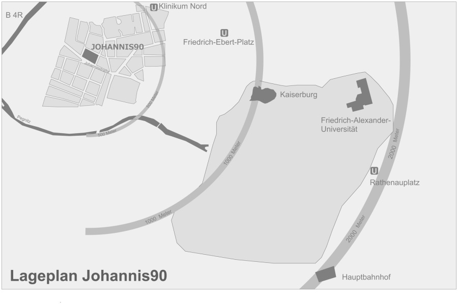 Auch sind die öffentlichen Verkehrsmittel, hier die Haltestelle der Trambahnlinie 6, nur einige Meter vom Objekt entfernt. Die reine Fahrtzeit vom Objekt bis zur Altstadt, hier Hallertor, dauert 5 Minuten. Ebenfalls ist neben der Straßenbahn die U-Bahnlinie U3 am Klinikum Nord in 900 Meter Entfernung innerhalb von 10 Fuß-Minuten erreichbar. Für Nachtschwärmer steht in der Johannisstraße der NightLiner-Bus im stündlichen Takt zur Verfügung.